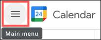 Ana Google Takvim sayfasını ziyaret ettiğinizde, takvimlerinize sol tarafa erişebilirsiniz. Menü gizlenmişse, görüntülemek için sol üstte ana menü (üç dikey çizgi) tıklayın.