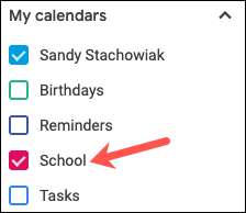 Ardından, takvimlerimi genişletin ve yarattığınız takvimi göreceksiniz. Olayları bu takvim için görüntülemek için kutuyu işaretlediğinizden emin olun. Takvimi veya olaylarını istediğiniz zaman gizlemek istiyorsanız, sadece işaretini kaldırın.