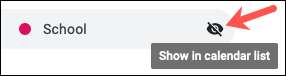 Takvimi daha sonra göstermek için, başlangıçta oluşturduğunuz ayarlara geri dönün. Takvimlerim için aşağıdaki ayarların altındaki ayarlar, takvim listesindeki gösteri için göz simgesini tıklatın.