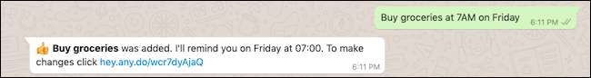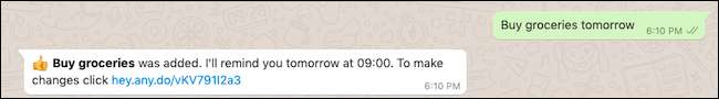 Bu kadar. WhatsApp üzerinde, hemen Any.Do bot bir onay metni alacaksınız.