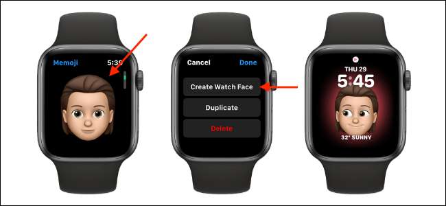 Apple saatinizdeki "Memoji" uygulamasını açın ve bir Memoji seçin. Ekranın altına doğru kaydırın ve "Watch Yüz Oluştur" seçeneğini seçin.