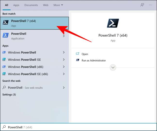 Görev çubuğundaki Windows Başlat düğmesini tıklatın, PowerShell'i açmak için Windows Aramasında "PowerShell" yazın ve arama sonuçlarında "PowerShell" görürsünüz. Üzerine sağ tıklayın ve "Yönetici Olarak Çalıştır" seçeneğini seçin.