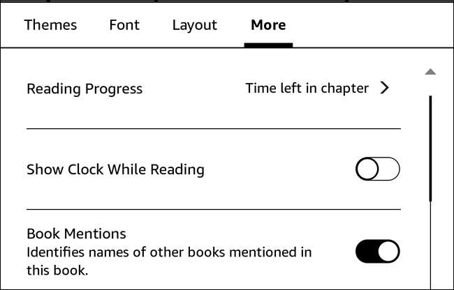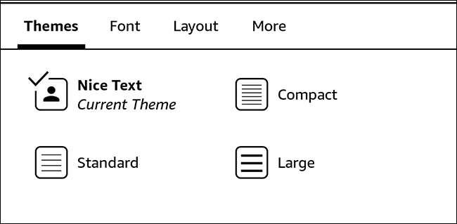 Daha fazla menüdeki seçenekler, metnin nasıl göründüğünü kontrol etmiyor, ancak genel okuma deneyimini etkiliyorlar. Orada, şöyle bir şeyler bulacaksınız: