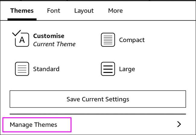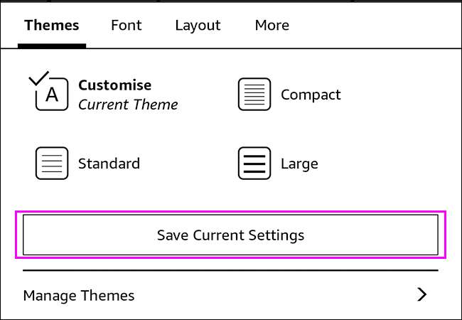 Kindle dört dahili temeli vardır: kompakt, standart, büyük ve düşük görsel. Kendi eklemek için, "Geçerli ayarları kaydet" e dokunun.