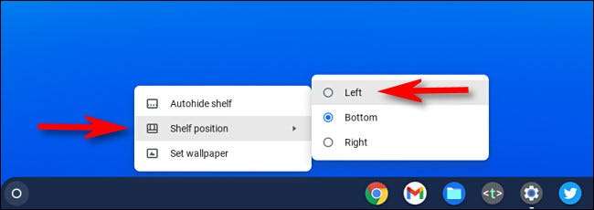 Krom OS rafını ekranınızın sol, sağında veya alt kenarına konumlandırmak kolaydır. Öncelikle, sağ tık Raf veya masaüstünüzün boş bir parçası. Açılan menüde, "Raf Konumu" seçeneğini seçin. Alt menüde, tercihinize bağlı olarak "sol," "alt," veya "sağ" seçeneğini belirleyin.