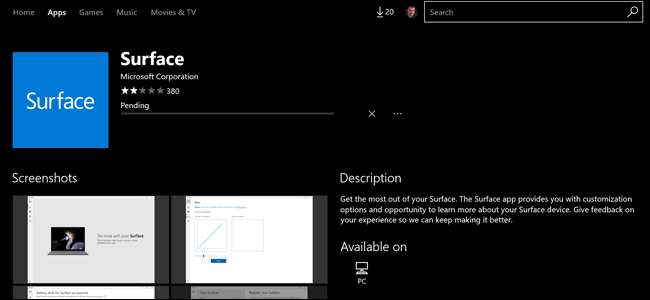 Herhangi bir nedenle, Surface cihazınızda Surface kontrol uygulaması yoksa, şimdi yüklemek isteyeceksiniz. Başlat menüsünü açın, ardından Windows 10 uygulama mağazasına erişmek için "Mağaza" ya dokunun. (Ana Başlangıç sayfanızda değilse, menüde arama yapmak için "mağaza" yazmanız yeterlidir.)