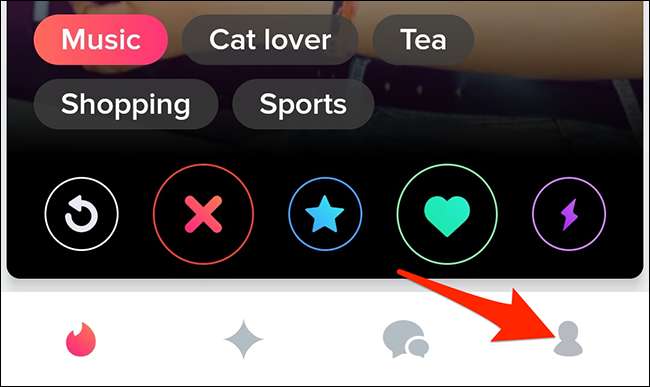 Telefonunuzdaki Tinder uygulamasını başlatarak başlayın. Uygulamada, alt çubuktan, en sağdaki profil simgesini (bir kişinin silueti) seçin.