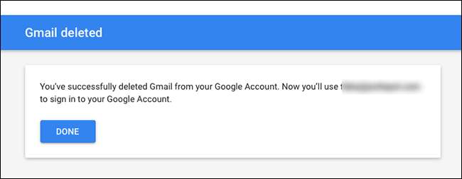 Bunu yaptıktan sonra, Gmail hesabınızı resmi olarak silmiş olursunuz. YouTube gibi şeylere erişmek için yine de Google hesabınıza giriş yapabilirsiniz, ancak daha önce sağladığınız yeni e-posta adresini kullanmanız gerekecektir.