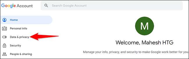 Google Hesabı sitenin sol taraftaki bölmede itibaren, “Veri & amp seçmek; Mahremiyet."