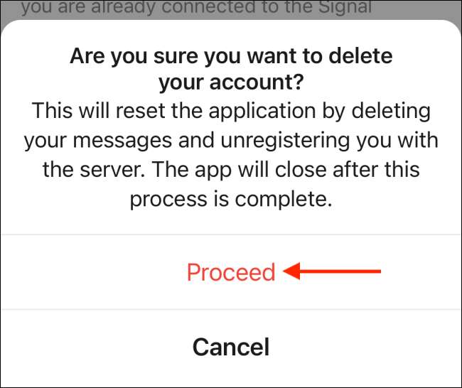Sinyal, arka plandaki hesap silme işlemini başlatır ve yapıldığında, Sinyal uygulaması kendini kapatır. Uygulamayı tekrar açtığınızda boş olacaktır.