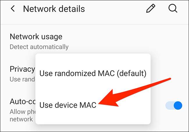 OnePlus ve piksel telefonlarında, "Cihaz Mac'i Kullan" seçeneğini seçin. Samsung cihazı kullanıyorsanız, "MAC Adresi Türü" ye dokunun ve "Telefon Mac" i seçin. Cihazınız bunlardan her ikisinden farklı ise, "Mac" yazan ve etkinleştiren benzer bir seçenek arayın.