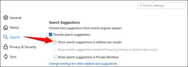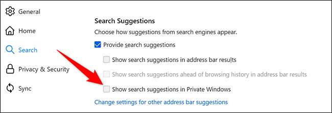 Firefox'un özel pencerelerindeki arama önerilerini devre dışı bırakmak için "Özel Windows'ta Arama Önerilerini Göster" seçeneğini de kapatın. Bu seçenek zaten kapatılırsa, hiçbir şey yapmanız gerekmez.