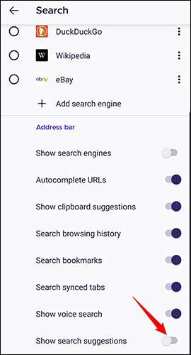 Ek olarak, arama önerilerini seçici olarak kapatabilirsiniz. Bu, düzenli pencerelerde engellerken, özel pencerelerde, özel pencerelerde bulunmaya devam edebileceğiniz anlamına gelir.