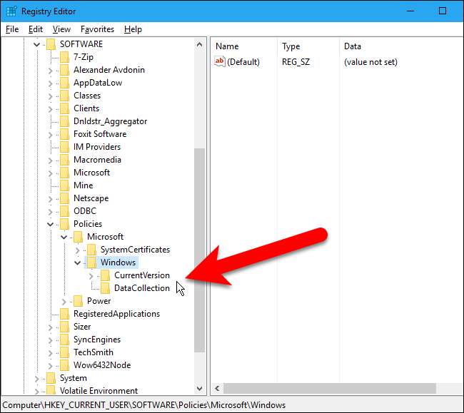 Kayıt Defteri Düzenleyicisi'nde, aşağıdaki anahtara gitmek için sol kenar çubuğunu kullanın: