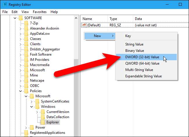 Windows'un Ev sürümüne sahipseniz, bu değişikliği yapmak için Windows Kayıt Defterini düzenlemeniz gerekir. Windows'un Professional veya Enterprise sürümüne sahipseniz, ancak Grup İlkesi Düzenleyicisi'nin aksine Kayıt Defteri'nde çalışırken daha rahat hissediyorsanız, bunu bu şekilde de yapabilirsiniz. (Pro veya Enterprise kullanıyorsanız, sonraki bölümde açıklandığı gibi daha kolay olan Grup İlkesi Düzenleyicisini kullanmanızı öneririz.)