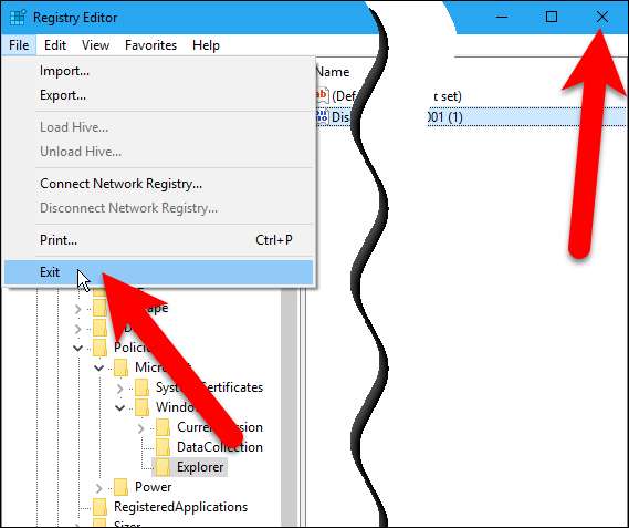 Kayıt Defteri Düzenleyicisi'ni Dosya> Çıkış'ı seçerek veya pencerenin sağ üst köşesindeki “X” işaretini tıklayarak kapatın.