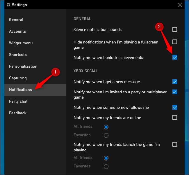 Oyun Çubuğu Ayarları penceresinin sol tarafındaki "Bildirimler" i seçin. Başarı bildirimlerini gizlemek için "Başarıların kilidini açtığımda bana bildir" seçeneğinin işaretini kaldırın.