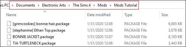 Mods klasöründe, bir Mods Tutorial (herhangi bir ad yeterli olacaktır) alt klasörü oluşturun ve tüm ".package" dosyalarını indirilenler klasöründen Mods Tutorial klasörüne taşıyın. "Bir Ev Oluştur" ekranında görünen CC (giysiler, saçlar, aksesuarlar vb.) "CAS" klasöründe, Build / Buy CC, "Build Buy Mods" klasöründe vb. Depolanır.