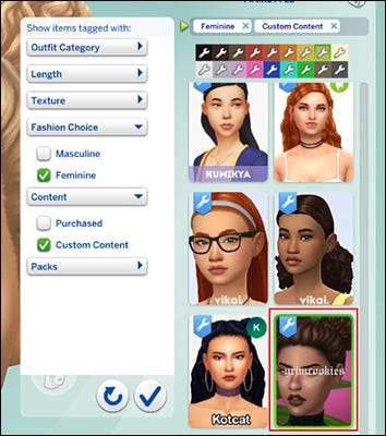 "Ev Oluştur" ekranındayken, "Saç" bölümüne tıklayın. İndirdiğiniz özel içeriği bulmakta sorun yaşıyorsanız, "Kadınsı" nın yanındaki küçük oku tıklayın, içeriği tıklayın ve saç bölümünün yalnızca size özel içeriği göstermesi için "Özel İçerik" in yanındaki kutuyu işaretleyin. İndirildi. Bu filtreyi Build / Buy'da bile tüm ekranlarda etkinleştirebilirsiniz!