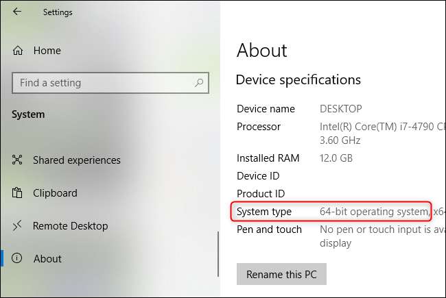 Windows'un 32 bit sürümünü mü yoksa 64 bit sürümünü mü kullandığınızı kontrol etmek için Ayarlar> Sistem> Hakkında'ya gidin. Ayarlar penceresini Başlat menüsünden veya Windows + i tuşlarına basarak açabilirsiniz.