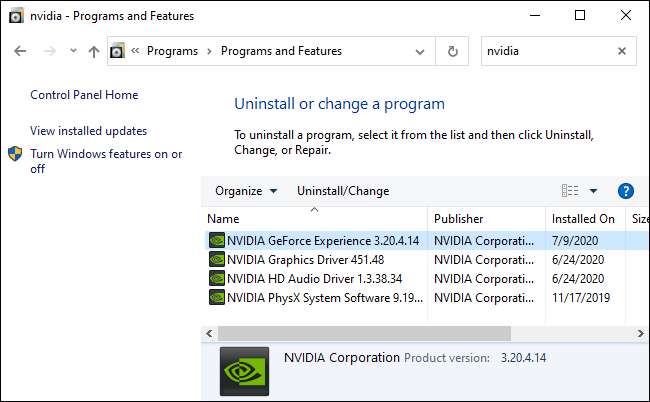 Denetim Masası> Bir Programı Kaldır'a gidin, "nvidia" yı arayın ve "NVIDIA GeForce Experience" uygulamasını kaldırın. Diğer NVIDIA sürücü girişlerini kurulu bırakın.
