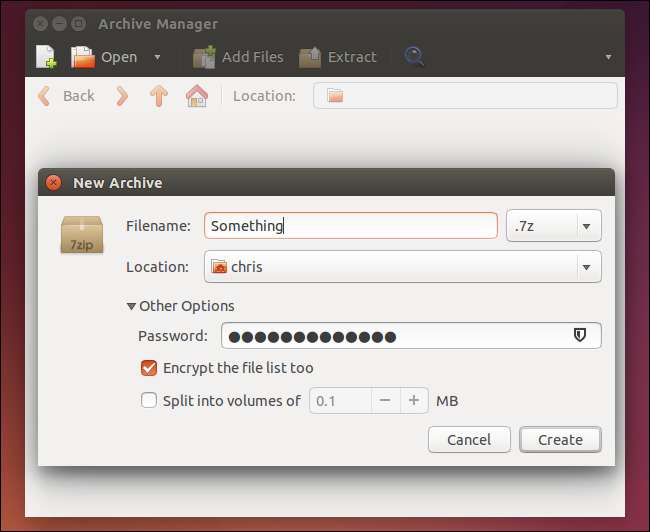 Linux birçok başka şifreleme aracı sunar. Örneğin şunları da yapabilirsiniz: başka herhangi bir klasördeki dosyaları şifrelemek için encfs kullanın . Grafiksel Arşiv Yöneticisi aracı kolayca şifrelenmiş arşivler oluşturabilir. Buradaki örneklerin tümü Ubuntu içindir, ancak bu yöntemler birçok farklı Linux dağıtımında ve masaüstü ortamında benzerdir. Tercih ettiğiniz Linux dağıtımınızın hangi şifreleme araçlarını içerdiğini görmek için bir arama yapın.