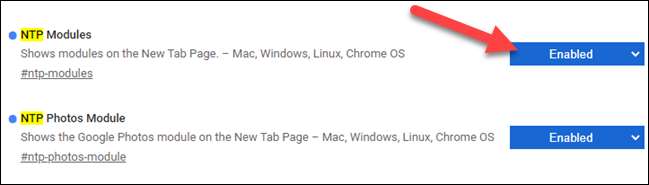 Sonra, ekranın üstündeki arama çubuğunda "NTP" girin. Etkinleştirmeniz gereken iki bayrak vardır: "NTP modülleri" ve "NTP fotoğraf modülü".