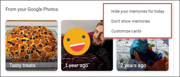 Tarayıcı yeniden başlatıldığında, yeni sekme sayfasına gidin. Bir Google Fotoğraf Kartı göreceksiniz, ayarlamak için "Anıları Bkz." Düğmesine dokunun.