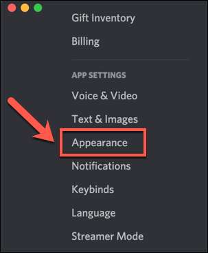 Discord'un ayarlar menüsünde, soldaki menüdeki "Görünüm" seçeneğini seçin. Bunu "Uygulama Ayarları" kategorisi altında bulabilirsiniz.