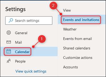 "Ayarlar" menüsünden, Takvim & GT; Olaylar ve davetiyeler.