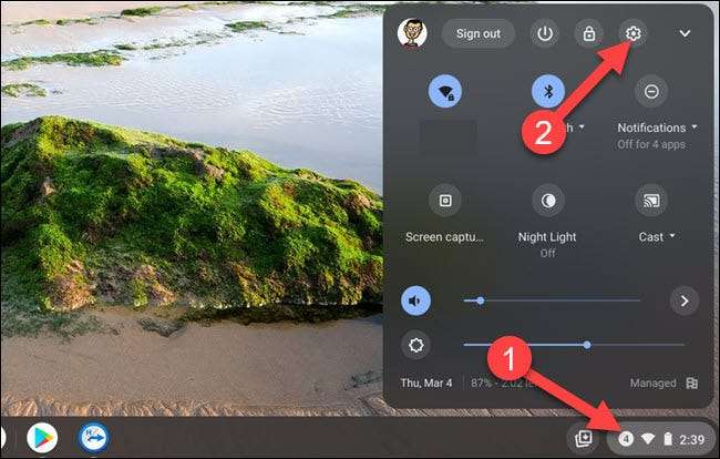 Birincisi, Hızlı Ayarlar menüsünü açmak için saati tıklayın ve ardından Ayarlar menüsüne gitmek için dişli simgesini seçin.