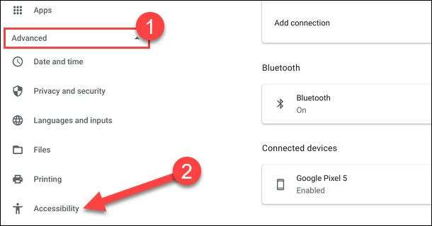 Ayarlar bölümünde, kenar çubuğu menüsünü genişletin ve ardından seçmek için “Gelişmiş” tık “Erişilebilirlik”.
