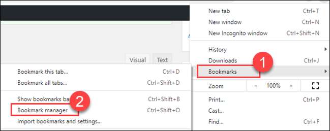 Sonra, "Yer imleri" üzerinde fare ve "Yer İşareti Yöneticisi" yi seçin.