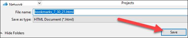Bu, tüm yer imlerinizi içeren bir HTML dosyası oluşturacaktır. Şimdi dosyayı ne istediğinizi seçebilirsiniz. İsterseniz dosyayı yeniden adlandırın ve bir konum seçtiğinizde "Kaydet" i tıklayın.