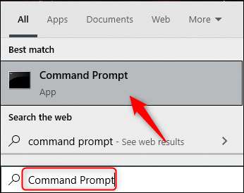Öncelikle, Komut İstemi'ni aç . Bunu yapmak için, Windows Arama çubuğunda "Komut İstemi" yazın ve arama sonuçlarından komut istemi uygulamasını tıklatın.