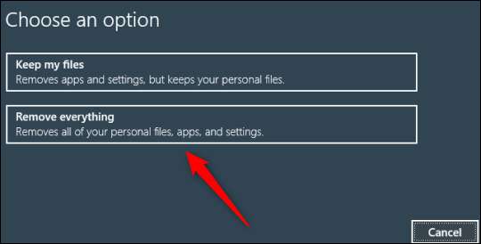 Bir seçenek seç menüsü görünecektir. Burada, dosyalarınızı tutarken uygulamaları ve ayarları kaldırmayı seçebilirsiniz veya her şeyi kaldırabilirsiniz. Dizüstü bilgisayarınızı satmak istiyorsanız, her şeyi kaldırmalısınız.