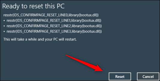 Bir sonraki ekran, PC'nin sıfırlanmaya hazır olduğunu size bildirecektir. Başlamak için "Sıfırla" ı tıklayın.