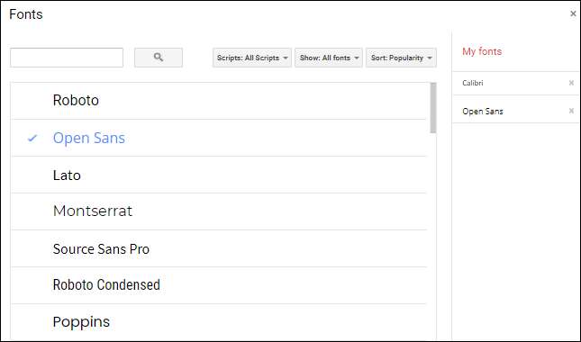 Yazı tipleri penceresi görünecektir. Bu, Google Slaytlarında bulunan tüm yazı tiplerini bulabileceğiniz yerdir.