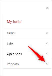 Bir yazı tipini "Yazı Tiplerim" listenizden kaldırmak için, fontun yanındaki "X" düğmesini tıklatın.