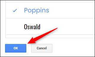Listenize yazı tiplerini eklemeyi ve çıkarmayı tamamladığınızda, pencerenin sol alt köşesindeki Mavi "OK" düğmesini tıklayın.