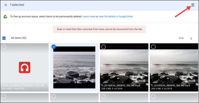Toplam boyuta bağlı olarak, Google seçilen dosyaları silmek için birkaç dakika sürer.