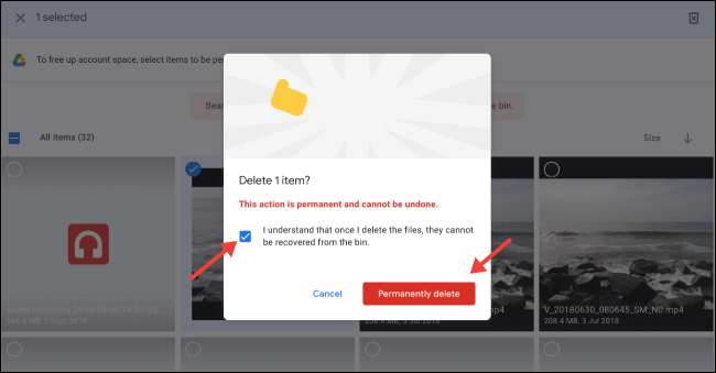 Görünen onay isteminde, "Dosyaları sildiğimde, Bin'den kurtarılamıyorlar" kutusunu işaretleyin ve ardından "Kalıcı Sil" düğmesine tıklayın.