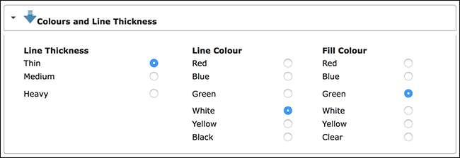 Çizdiğiniz dairelerin görünümünü değiştirmek için "Renkler ve Çizgi Kalınlığı" bölümünü tıklayın ve ardından çizgi kalınlığı, çizgi rengi ve dolgu rengi için istediğiniz değerleri seçin. Önceden çizdiğiniz bir dairenin görünümünü değiştiremezsiniz, bu nedenle daireyi eklemeden önce bu değerleri ayarladığınızdan emin olun.