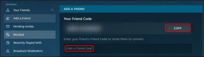 Bu, Steam istemcinize "Arkadaş Ekle" sekmesini yükleyecektir. Burada sekiz basamaklı Arkadaş Kodunuzu görüntüleyebilirsiniz. Bu rakamları panonuza koymak için "Kopyala" yı tıklayın, böylece onları bir mesaja veya e-postaya arkadaşlarınıza yapıştırabilirsiniz.