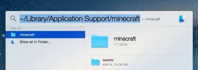 / Kullanıcılar / <kullanıcı adı> / Kütüphane / Uygulama Desteği / minecraft