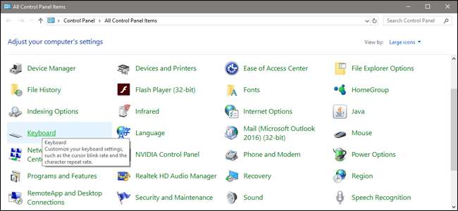 Anahtarınız çok sık tekrarlanıyorsa, herhangi bir fiziksel değişiklik yapmadan sorunu çözebilirsiniz. İşletim sisteminizin tekrarlanan tuş vuruşlarını kabul etme hızını değiştirmek isteyeceksiniz. Windows'ta bunu işletim sistemi genelindeki klavye ayarları menüsünden kontrol edebilirsiniz. Denetim Masası'nı açın, ardından Klavye simgesine çift tıklayın.