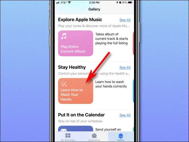 Galeri görünümünde, göz atın ve herhangi bir kısayol seçin. Örneğimiz için "Ellerinizi nasıl yıkayacağınızı öğrenin" dedi. Hangisini seçtiğin önemli değil.