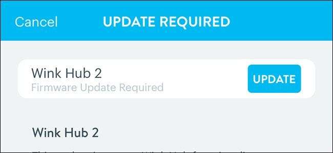 Wink hub'ını güncellemek için, uygulamadaki hub ayarlarına erişmek üzere yukarıdaki adımları izleyin. Sonunda alt kısımda bir donanım yazılımı güncellemesini size bildiren küçük bir banner ile karşılaşacaksınız.