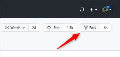 Bir repo forking basittir ve sadece birkaç tıklamayla yapılabilir. Bir repo için hesabınıza giriş yapın ve sonra çatal yapmak istediğiniz depoya gidin. Pencerenin sağ üst köşesinde, havuzun çatlak olmadığı sayısını temsil eden bir numara olan bir "çatal" düğmesini göreceksiniz. Devam et ve bu düğmeye tıklayın.
