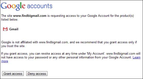 Büyük Postayı Bul hesabınızı büyük postalar için tarayan üçüncü taraf bir hizmettir. Bir IMAP istemcisiyle uğraşmak istemiyorsanız, bu, büyük e-posta iletilerini bulmanın hızlı ve web tabanlı bir yoludur.